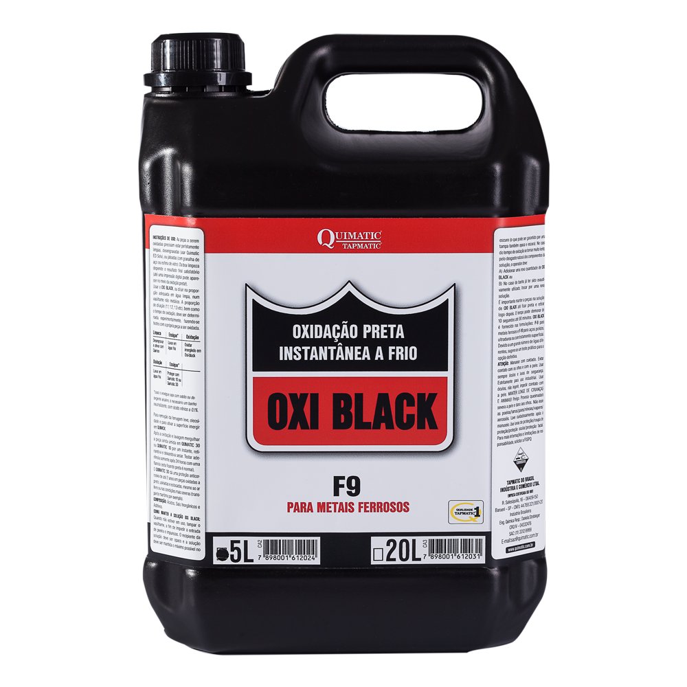 Duas versões: OXI BLACK F 9 - ideal para 90 % das aplicações em metais ferrosos e OXI BLACK F10 Ideal para aços polidos, aços ultra duros ou com tratamento superficial.